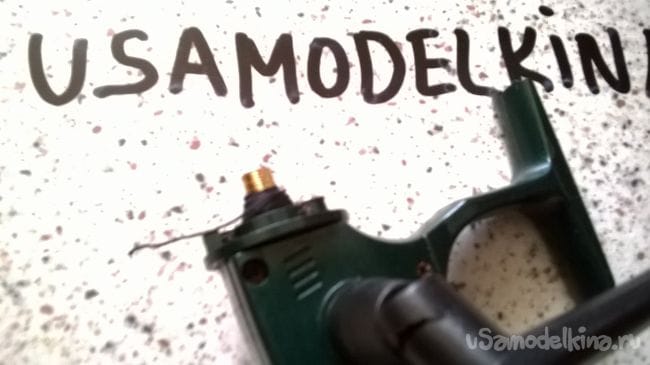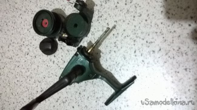 Аккуратно проворачивая ручку катушки, центруем патрон. Надо добиться минимального колебания. Даем клею остыть пол часика.