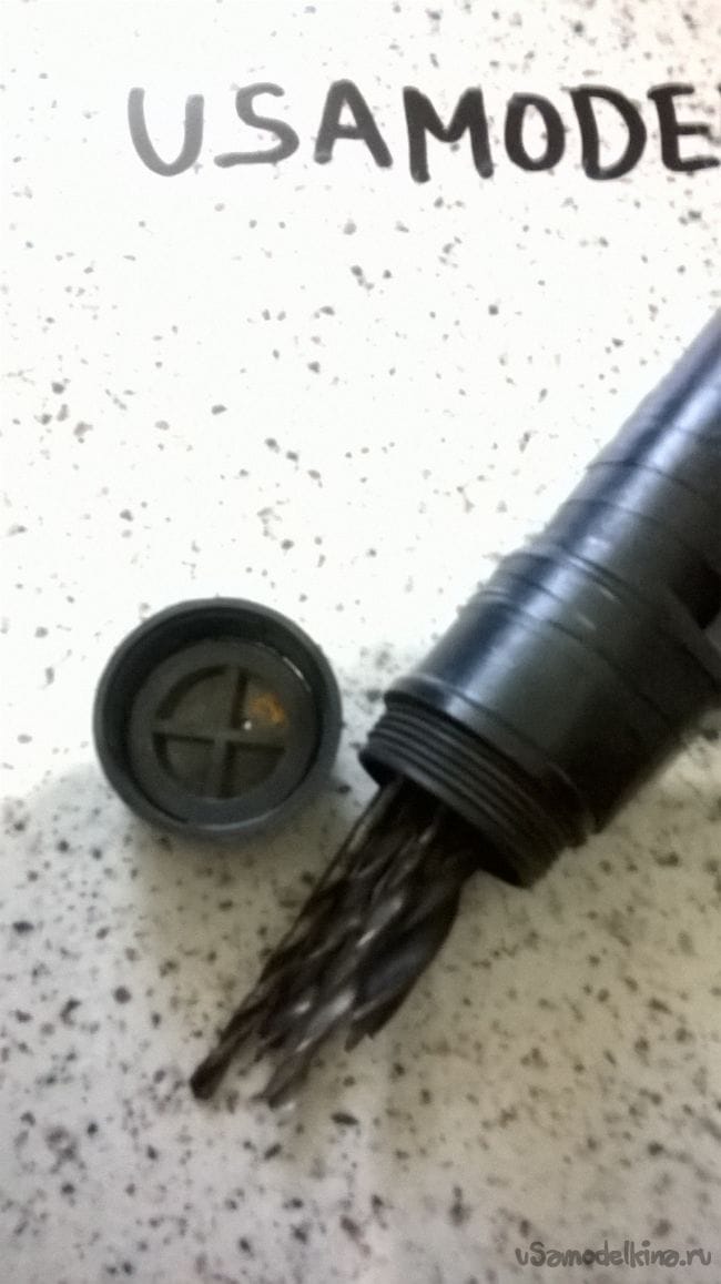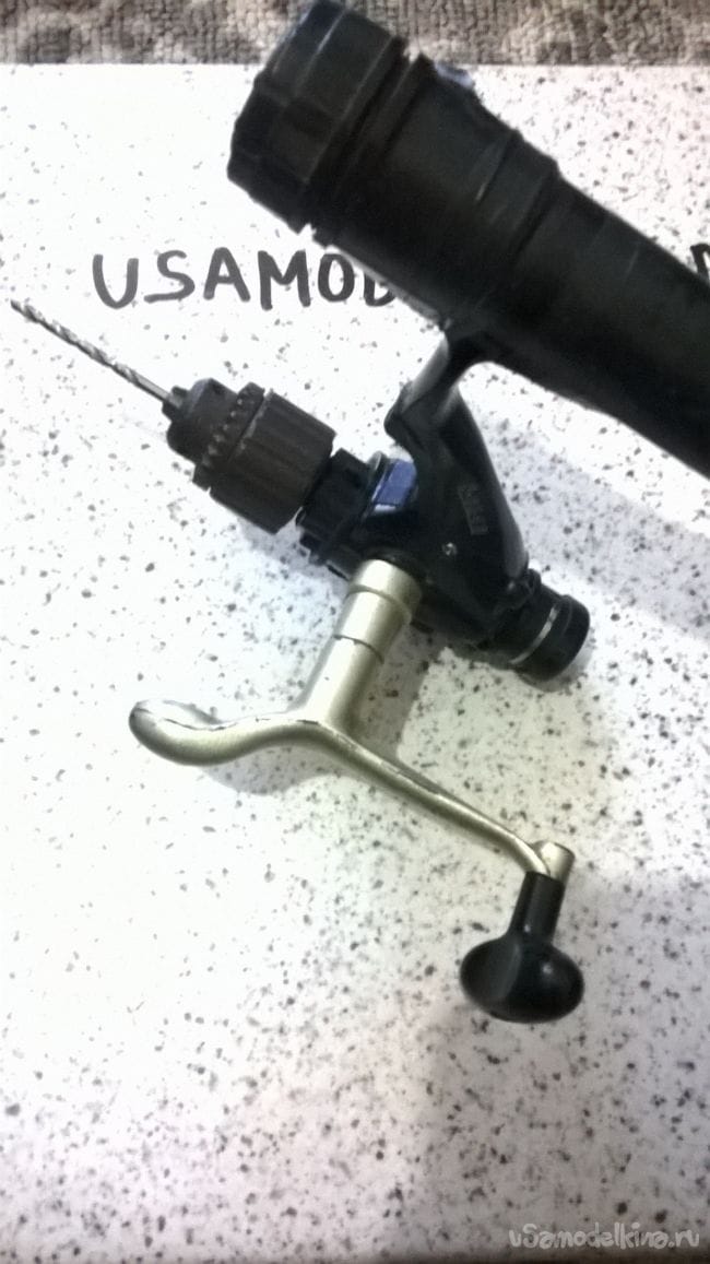 Для удобства сверления я примотал коловороты к полой трубке (тоже от сломанной удочки). В ней можно также и сверла хранить.