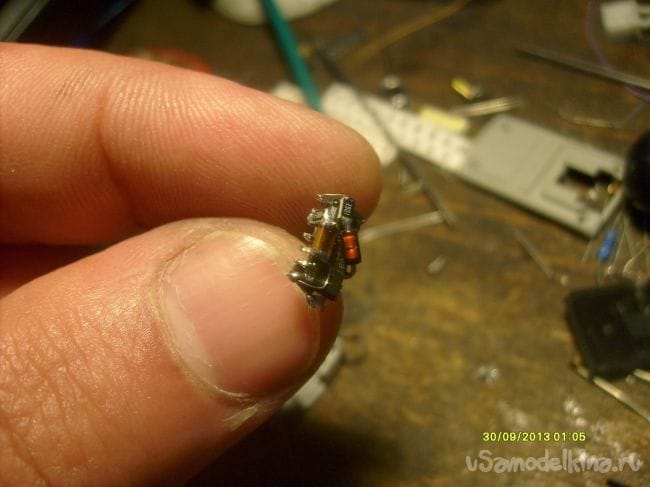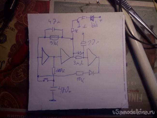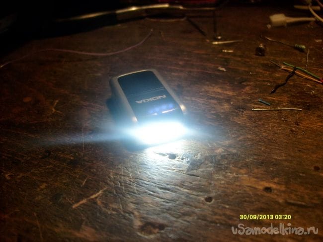 Корпус светильника из сломанной гарнитуры NOKIA. Батарея  фонаря из вертолета для детей после аварии. IS составляет 1/2 40106. Каждое нажатие кнопки изменяет состояние выхода, RC группы 3 MОм и 22 мкФ обеспечивает автоматическое отключение примерно через 4 минуты.   Я добавил в корпус неодимовый магнит и разъем для зарядки.