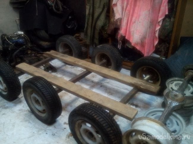 Вместо опорных катков будут применены колеса от жигулей на 13 с камерой.