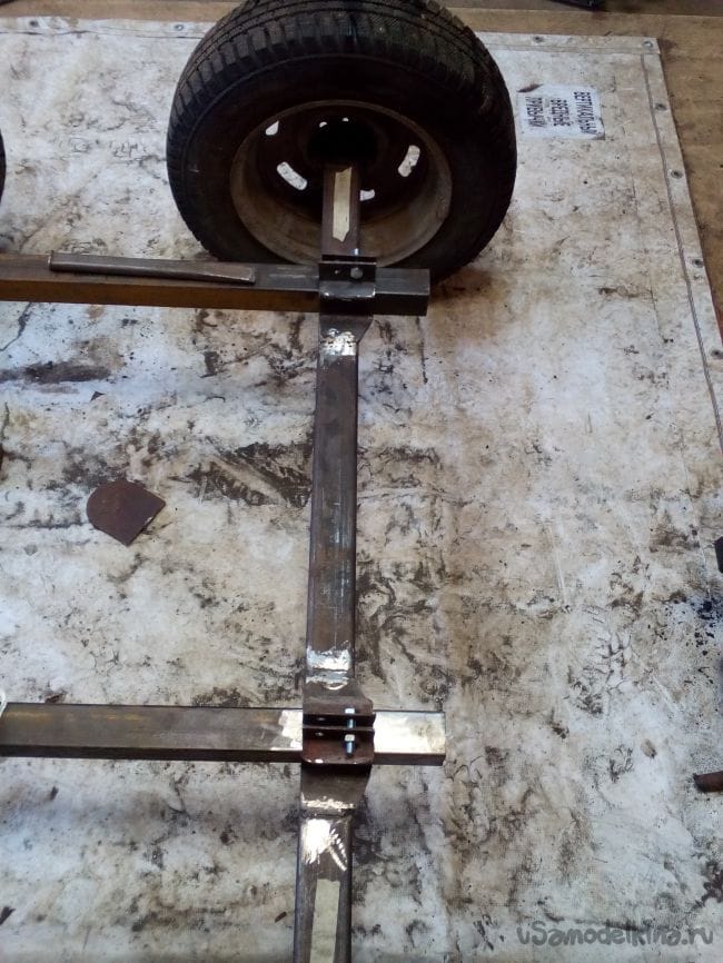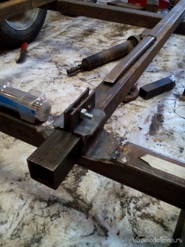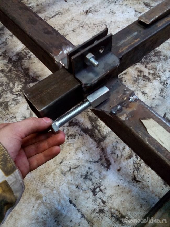 Траки выполнены из профильной трубы пиленой пополам 60*20*3 мм, длиной 450 мм.