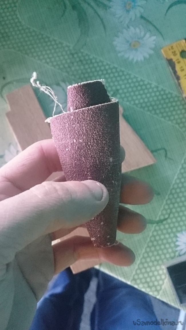 Следующий шаг, берем наждачную бумагу и шлифуем составные части, это ручка и основание.