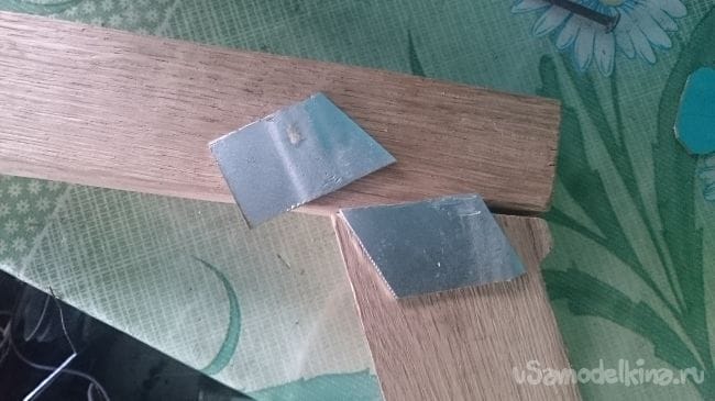 После того, как все составляющие хорошо зашлифованы, берем ножницы по-металлу и аккуратно вырезаем из пластин такие накладки, как на фото.
