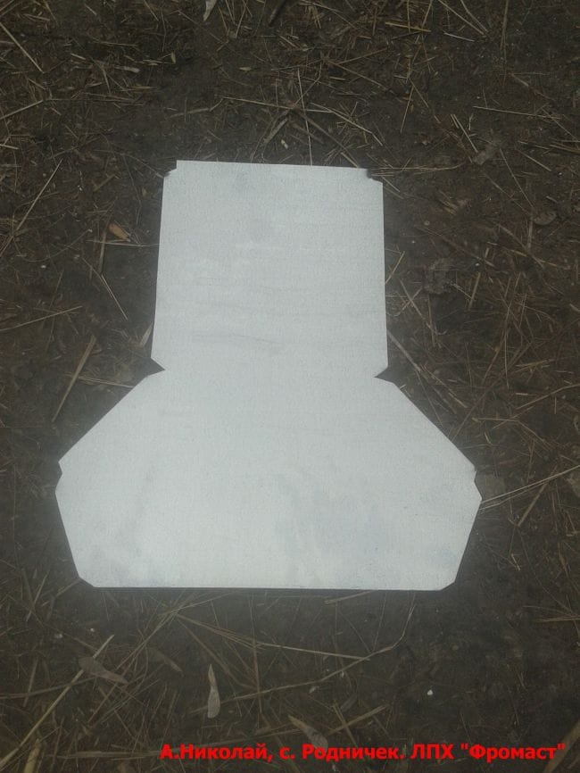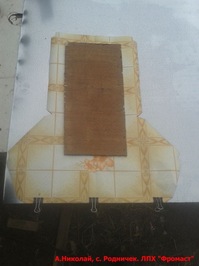 Изначально я приготовил выкройку. Делал методом подбора,т.е. вырезал и смотрел-подойдет или нет. Так как погода была ветреной, чтобы не задувало край, положил на нее груз. Но это не мешает, На фото все хорошо видно и вы без труда сможете сделать себе такую же.