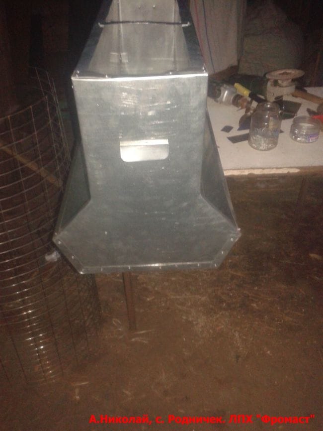 Преимущество данной кормушки в том, что вы больше не будете зависеть от того, есть ли зерно у кур или нет. Засыпав один раз в несколько дней, в зависимости от того, сколько голов птиц у вас, вы сможете спокойно заниматься своими делами и не думать о том, что нужно идти кормить хозяйство. По мере склевывания зерна, благодаря бункерному устройству, отсек для кормления постоянно будет пополняться кормом, пока не закончится в бункере. Время изготовления около 4,5 часа. Это полностью от разработки чертежа и до последней клепки. Далее я наловчился делать за 2-2,5 часа. Себестоимость такой кормушки около 800 рублей, тогда как за аналогичную цену в интернете можно купить кормушку на 15 литров. Преимущества очевидны. Так что делайте. Желаю всем успехов!!
