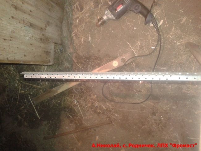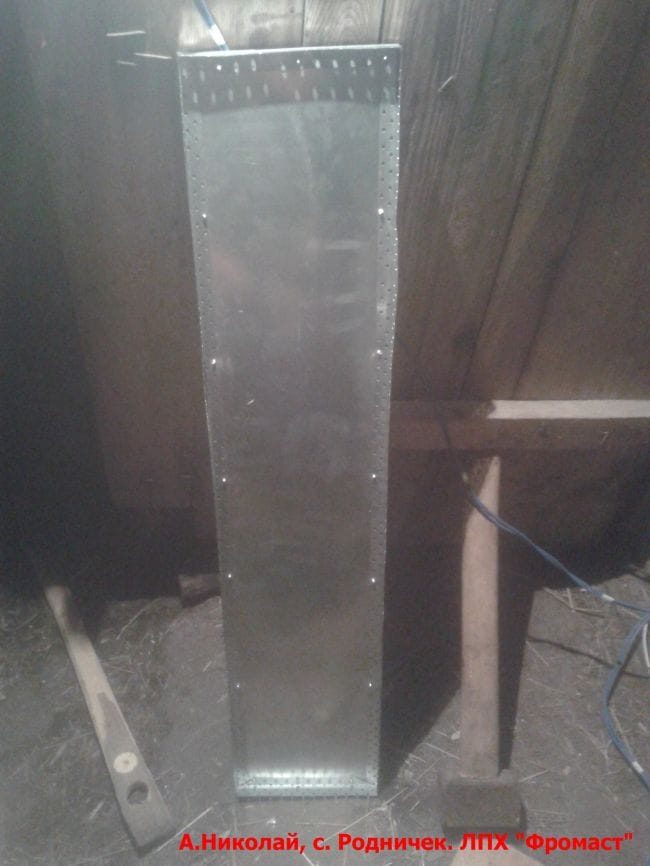 Следующим шагом я вырезал из металла 2 полосы, которые будут крепиться во внутрь кормушки и будут передними стенками кормушки, ее бункерной частью. Тут я уже просто отрезал ровно по 96 см, так как загибы на них не нужны, они будут крепиться к боковым стенкам, на которых они уже есть.