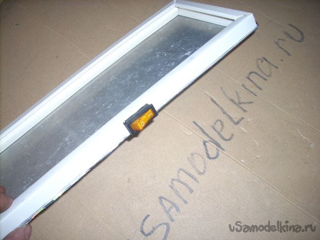 Рамка необходима для того, чтобы спрятать тыльную сторону с проводами, а также для закрепления на ней выключателя, купленного (увы!) в магазине электробарахла.