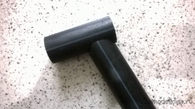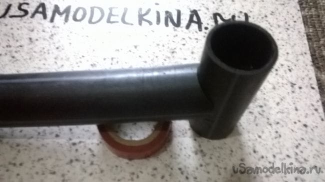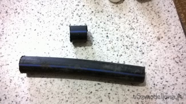 Затем отрезаем из трубки диаметром 25 мм. кусок сантиметра на три.Он будет служить уплотнением для склеивания.