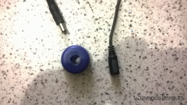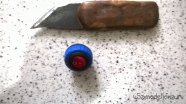 Подготовим кнопку.В крышке от бутылки,ножом делаем отверстие под имеющеюся кнопку.