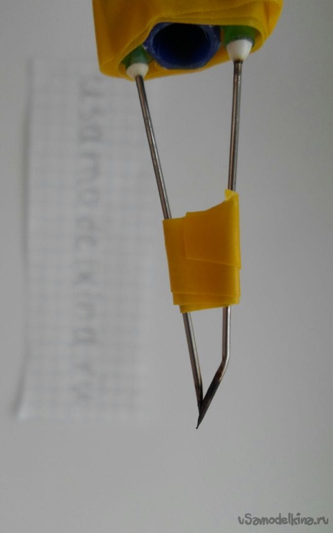 Чтобы иголки лучше соприкасались, необходимо зафиксировать их кусочком изоленты или припаять.