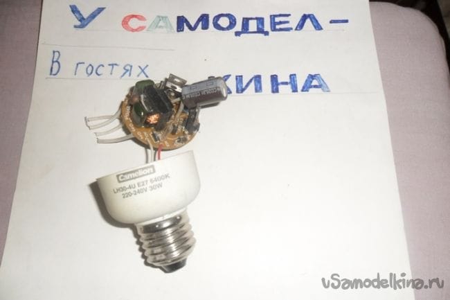 Мне досталась энергосберегающая лампочка с нечаянно разбитой колбой и применение дросселя нашлось сразу.