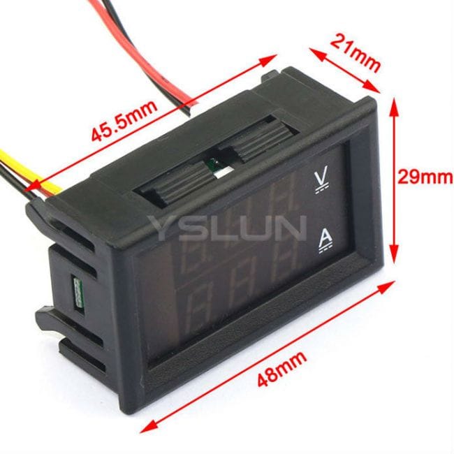 это ампервольтметр на 100 вольт/10 ампер, он поставляется уже со встроенным шунтом. Многие радиолюбители такие измерительные приборы довольно часто приобретают для своих самоделок. Цифровой прибор может запитываться как от отдельных источников,