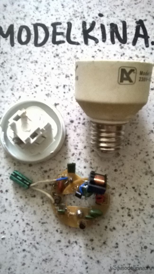 Вытаскиваем и обрезаем плату. Со стороны цоколя надо постараться, как можно по длиннее оставить провода (для дальнейшей спайки проводов).