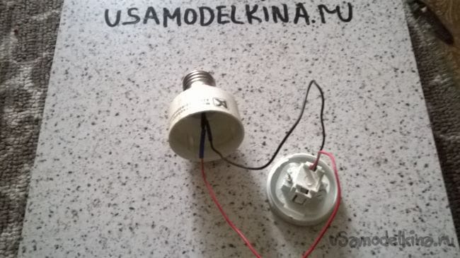 Плюсовой провод я припаял к центральному проводу цоколя о минус к корпусу.