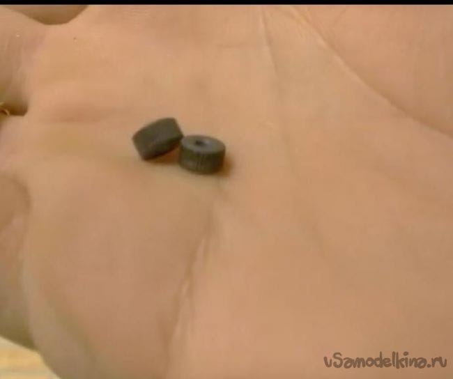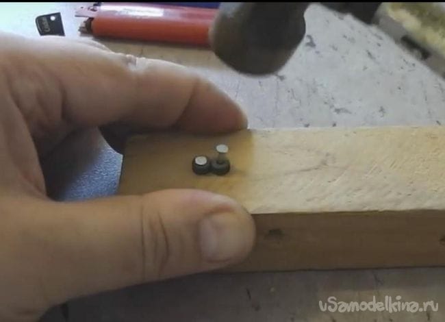 Для этого на боку колесика сделаны насечки. Если левое колесико прибито к бруску вверх насечками, то правое прибивают насечками вниз. Прибил гвоздем второе колесико и приступил к испытанию конструкции, изготовленной за полчаса.