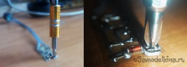 Если вы собираете схему на дискретных элементах рекомендую взять для этого устройства потенциометр типа 3296W, так как он имеет очень точную и плавную регулировку сопротивления, я же использовал миниатюрный smd резистор. В качестве преобразователя электрических колебания в звуковые используйте маленький электромагнитный динамик похожий на черный бочонок (электромагнитный звукоизлучатель).