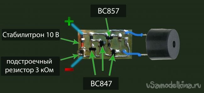 первая, следящая за разницей потенциалов и вторая – элементарнейший звуковой генератор. Разберем принцип работы.