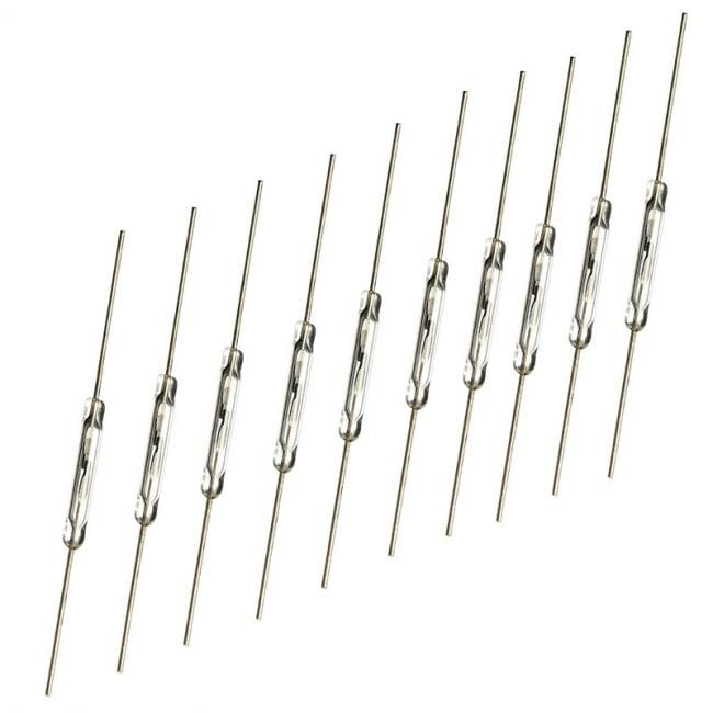 На фото вы видите устройство данного прибора: стеклянная, заполненная инертным газом, колба с двумя подвижными упругими контактами, которые с легкостью соеденяются при поднесении магнита.