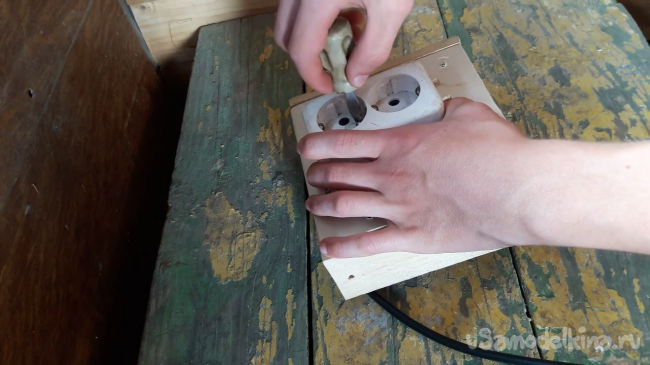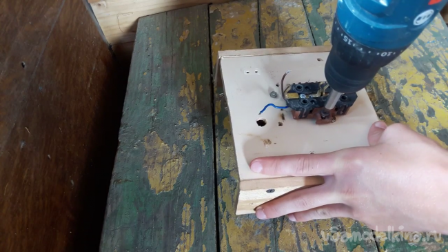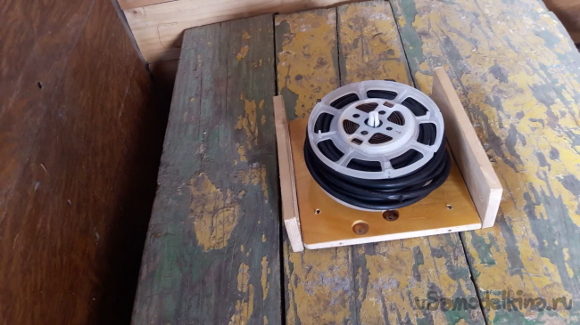 Когда катушка извлечена из пылесоса ее нужно где-то закрепить. Нужно собрать какую-нибудь платформу или коробочку. Я размещу барабан на большой деревянной «скобе».