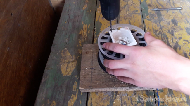 Когда вышеуказанные отверстия проделаны займемся крепежом.Теперь можно устанавливать катушку предварительно просверлив для нее по центру отверстие.