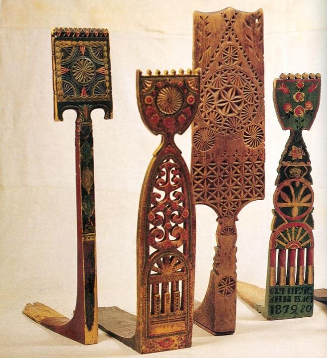 Работа ткачих и прях с давних времен почиталась у любой народности; и форма прялок и способы их украшений усовершенствовались векам.