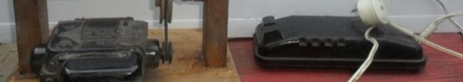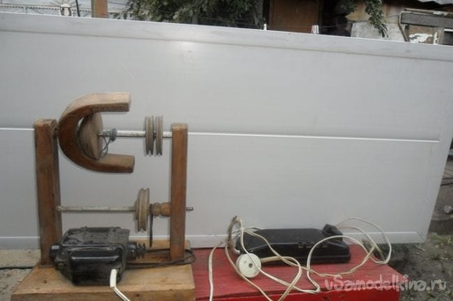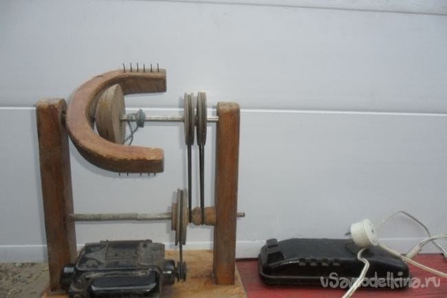 В электропрялке используется электромотор от бытовой швейной машинки с педалью - реостатом.