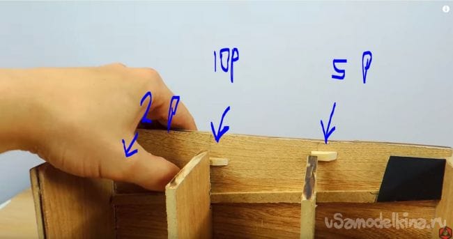 Ах да чуть не забыл! Нам теперь нужно сделать чудо механизм который будет распределять наши монеты по номиналу, например если вы кидаете 10 рублей они попадают к 10-тем рублям, 5 рублей к 5-тем рублям… и тд.