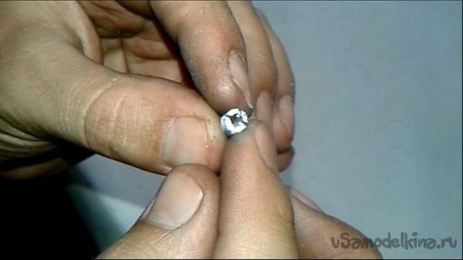 Вставляем деталь в вал и просверлив сверлом 2,5 мм, штифтуем подходящим по диаметру отверстия гвоздем скрепляя их между собой.