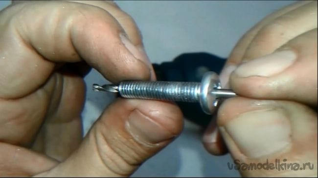 Установив заготовку хвостовиком в патроне шуруповерта, надфилем затачиваем головку под конус.