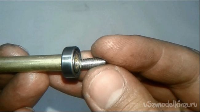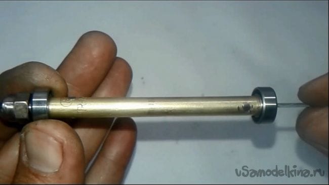 А в качестве вала для подшипников я использовал латунный вентиль от камеры колеса грузового автомобиля.