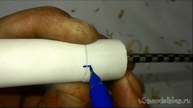 Вставив штырь в одно из отверстий, соединяем обе части, отмечаем с обратной стороны корпуса и проделываем ту же операцию для второго крепления.
