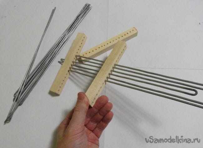 Используя капроновую нить, для надежности обматываем края всех реек. В трещину заливаем клей.