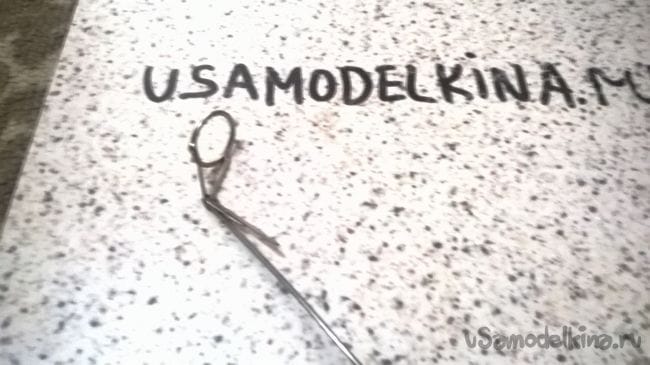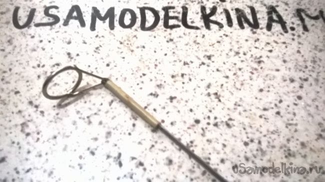 Затем продеваем кембрик на ровный конец пластинки, и отмеряем расстояние от катушки до первого кольца (для того чтоб сторожок не цеплял следующие кольцо)