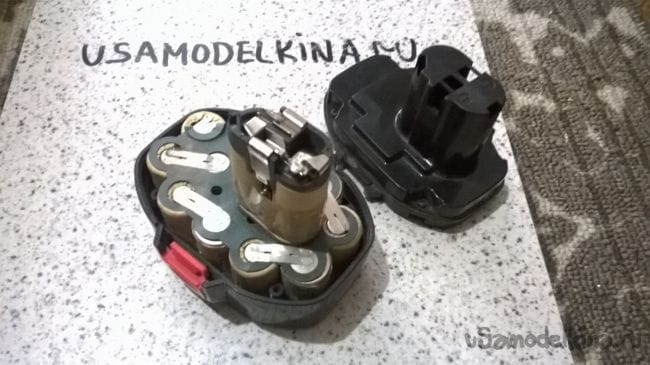 И так берем неработающий аккумуляторный блок и вытаскиваем из него аккумуляторы. Оставим только два верхних (на них мы будем припаивать провода для запитки шуруповерта).