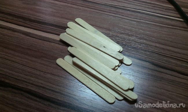 И так для подставки нам понадобится только палочки от мороженного и термо клей.