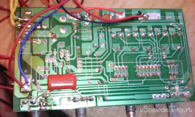 Из платы стабилизатора переменные регулировочные резисторы удалены и при помощи удлиняющих проводов к проводам идущим к переменным резисторам блока питания.