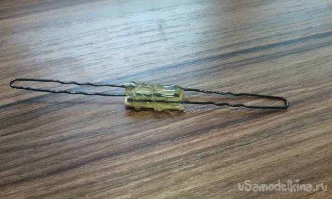 Немного сгибаем шпильки и привязываем нитку покрепче (можно также приклеить для крепости)