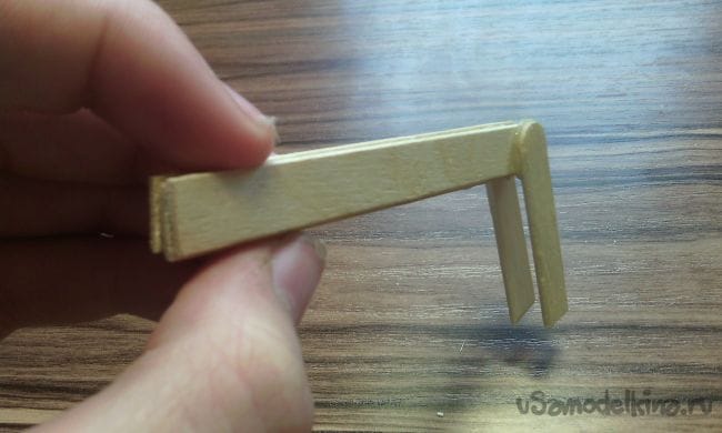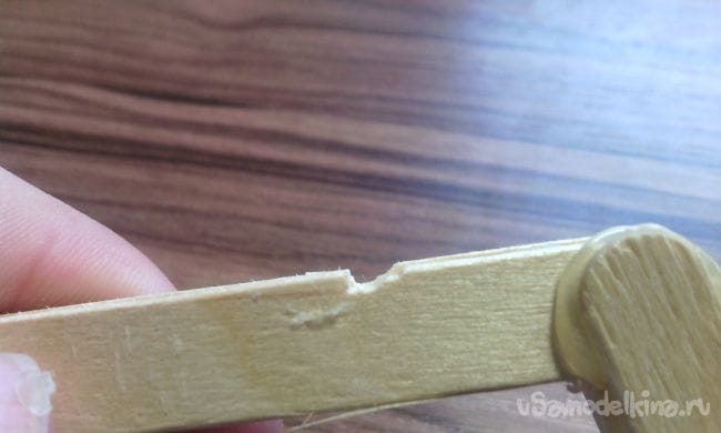 Берём ещё одну палочку от мороженного и откусываем 2 кусочка длинной 2-3 см и 3,5 см: