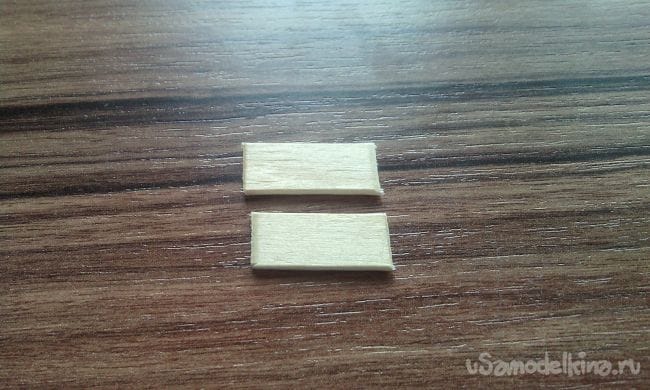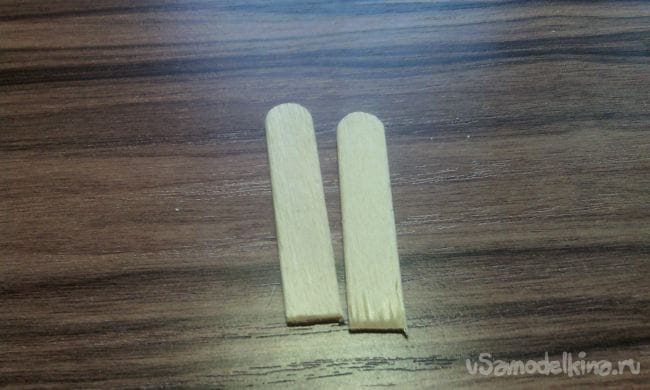 И так для начала берём палочку от мороженного и с помощью кусачек откусываем два одинаковых кусочка примерно 2 см в длину: