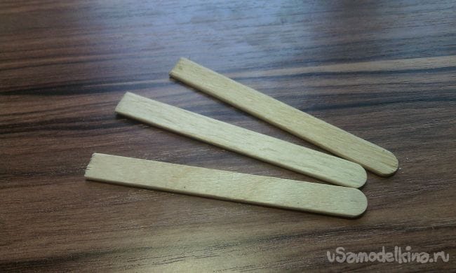 Откусываем с помощью кусачек концы у трёх палочек от мороженного: