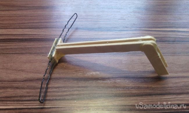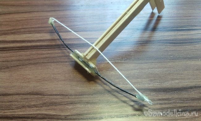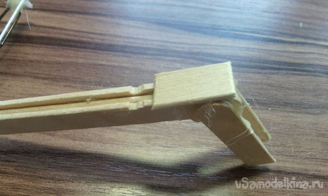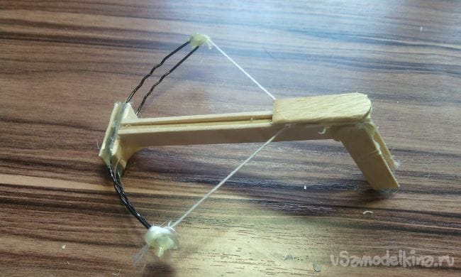 И приклеиваем их к мини арбалету, это дополнение нужно для того чтобы "тетива" арбалета не слетала вверх при выстреле