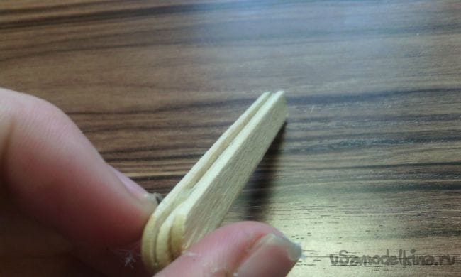 И склеиваем их таким образом чтобы между ними получился паз в который наполовину будет влезать спичка: