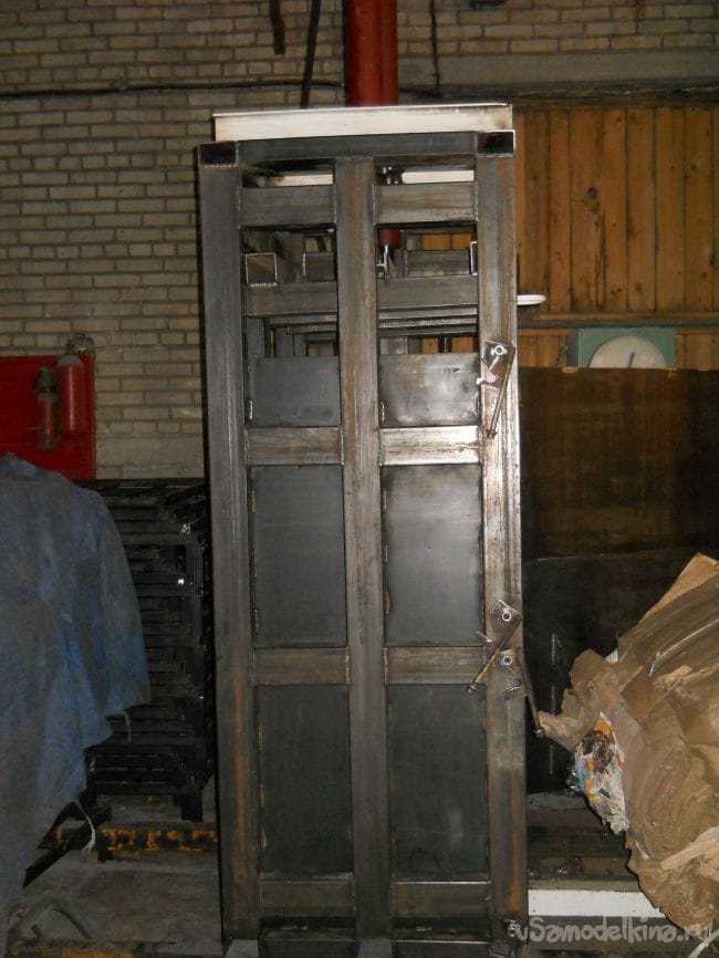 Фиксируются двери за защелки тип крючок вырезанные из листовой стали толщиной 10мм.