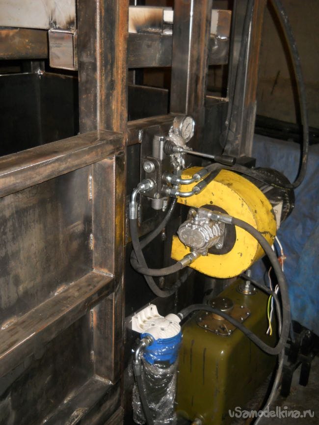 Стандартные поворотные крепления на штоках цилиндров отпилены и они жестко приварены к лапе пресса.