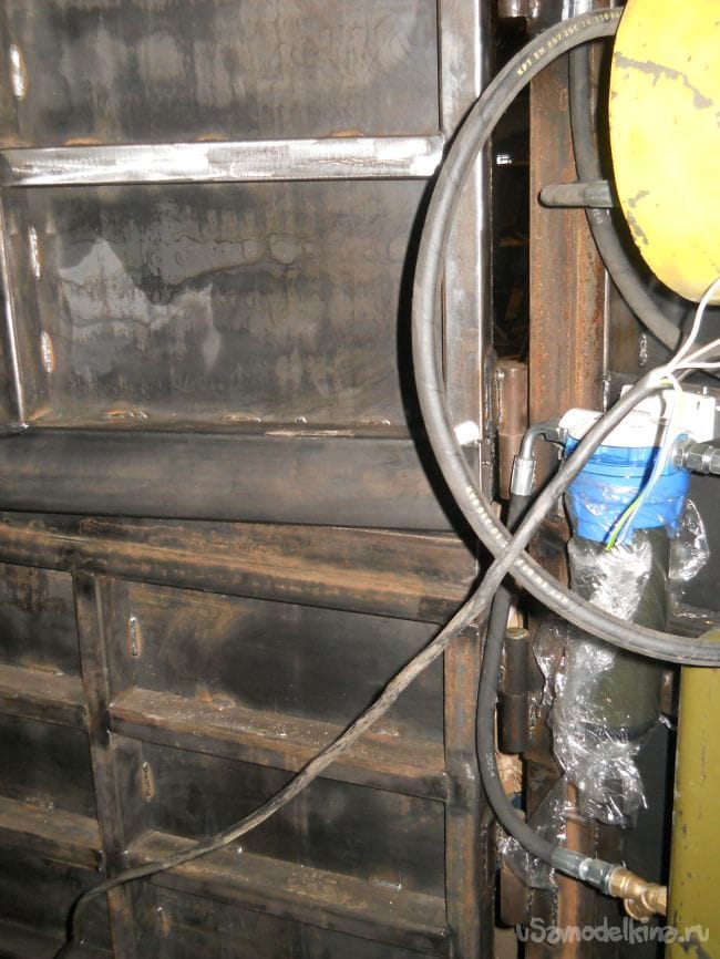 В швеллер на полу прокладывается обвязочный материал один конец с запасом остается снаружи другие концы протягиваются через отверстия в задней стенке.