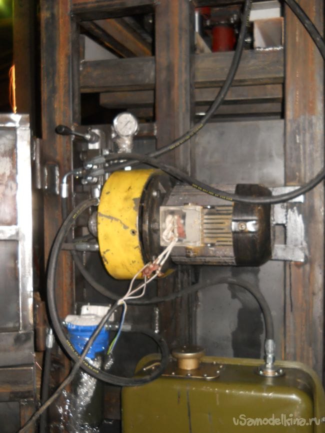 Распределитель подключен в свою очередь рукавами высокого давления к гидравлической насосной станции высокого давления.