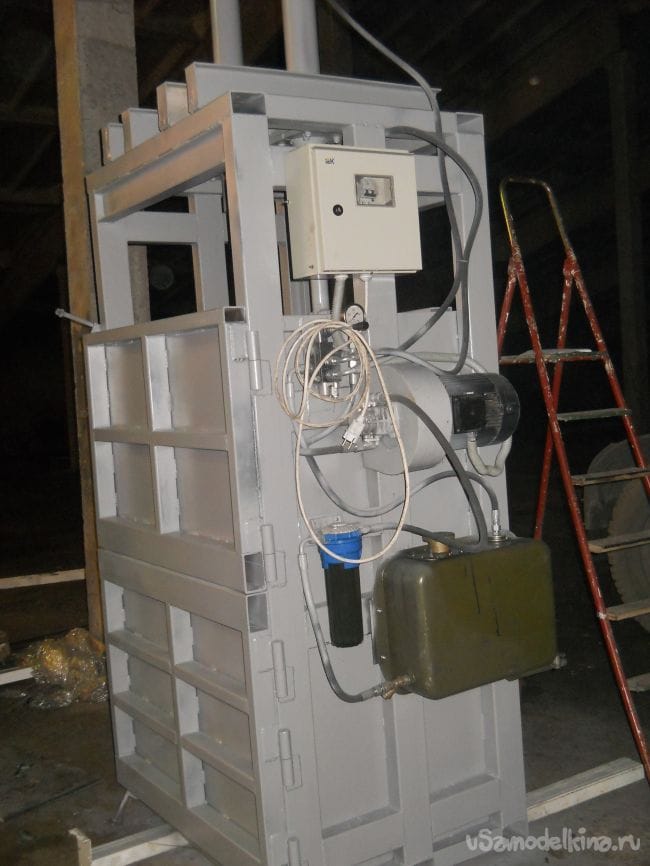 Пресс изготавливался для пакетирования картона, пластиковых бутылок и другого втор сырья.