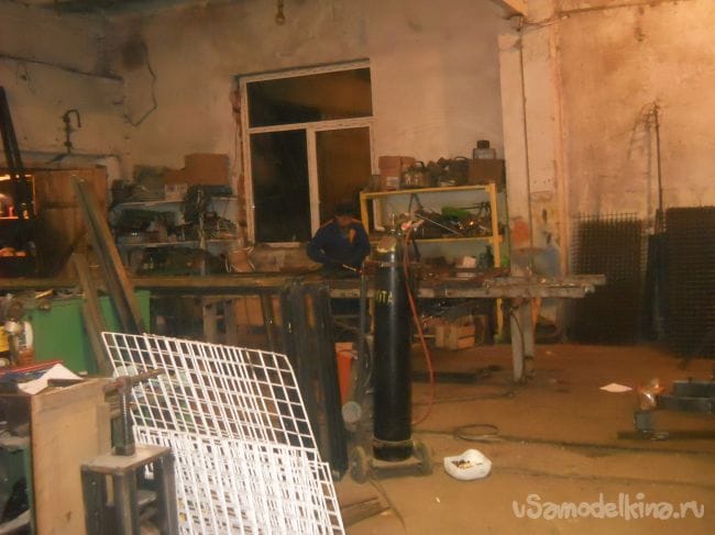 На полу установлены швеллера для протаскивания обвязочной проволоки или веревки.
