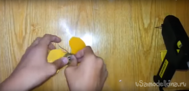 Полотно от баночки разрезаем и скручиваем в трубочку и склеиваем.