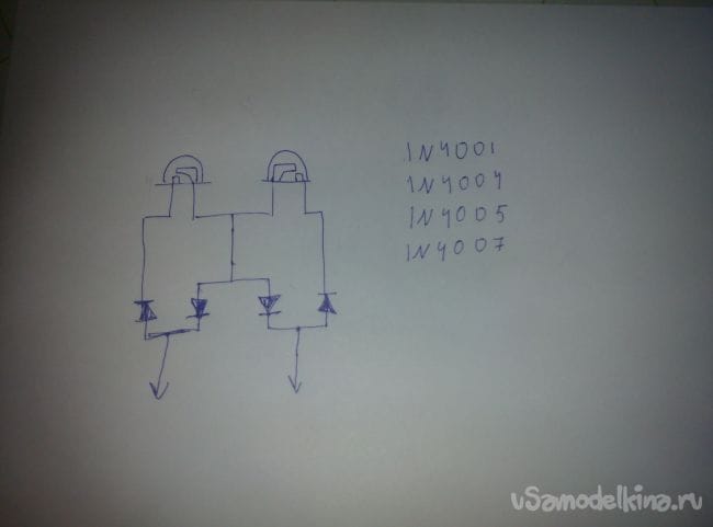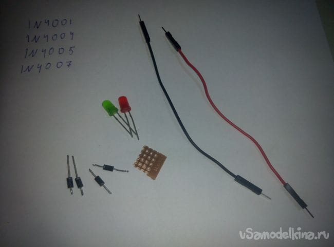 -диоды 4 шт. (модель 1N4001 либо аналоги: 1N4004, 1N4005, 1N4007);